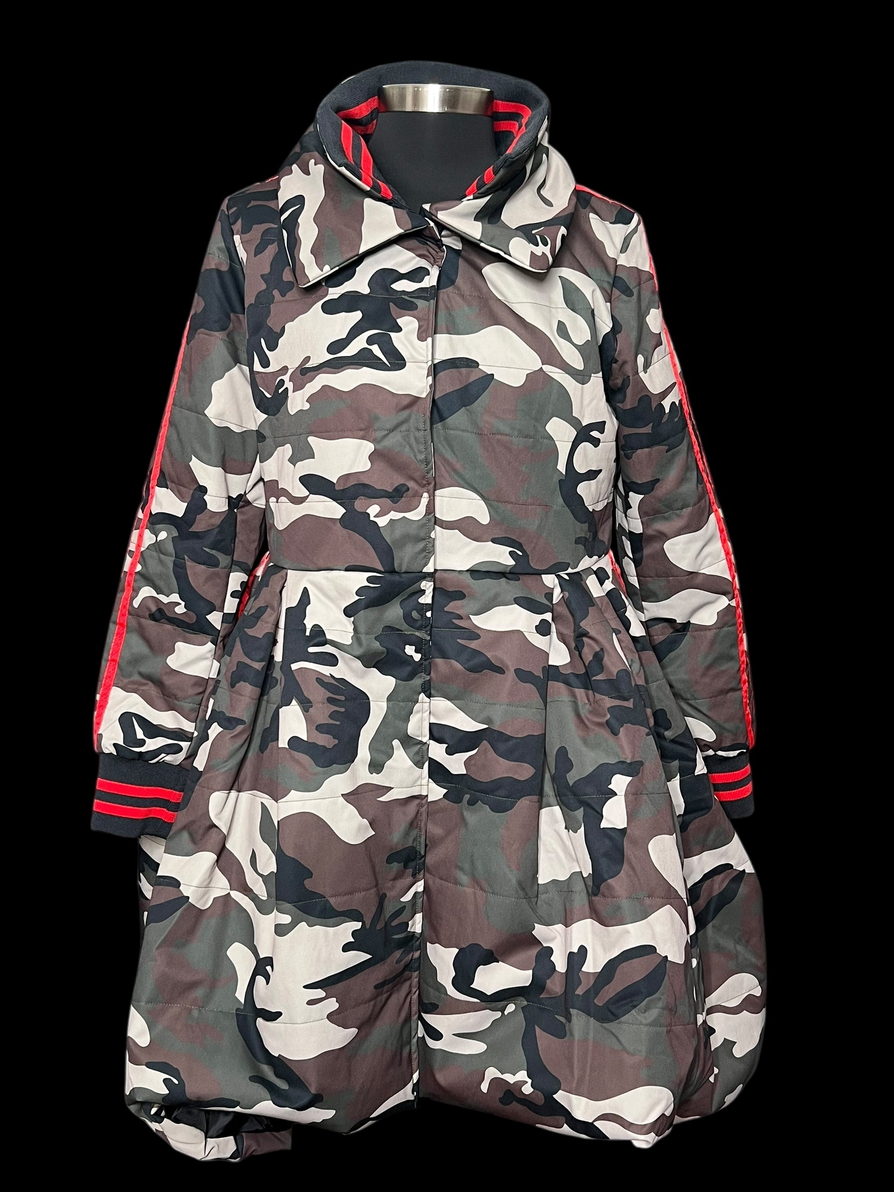 01.17 Coats NWT Akira Camo Decker Peplum Puffer Red Stripe (XL) Fits (8/10)