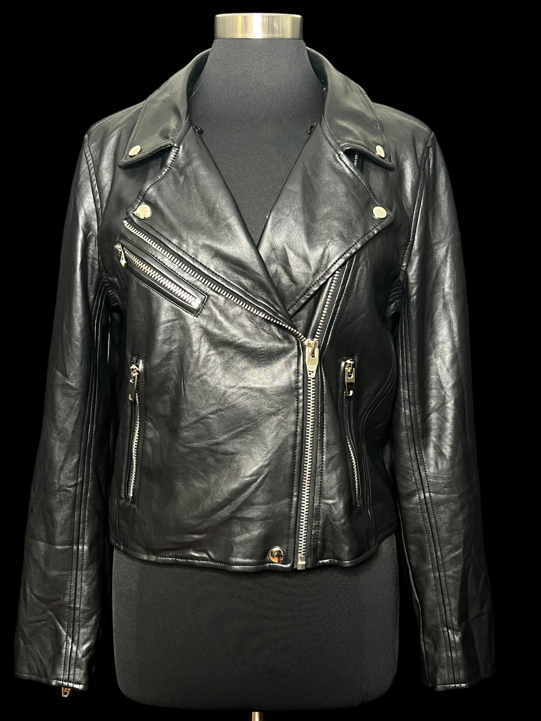 08.29 Jackets NWT Buddy Love Blk Faux Leather Removable Collar (8/10) Slim