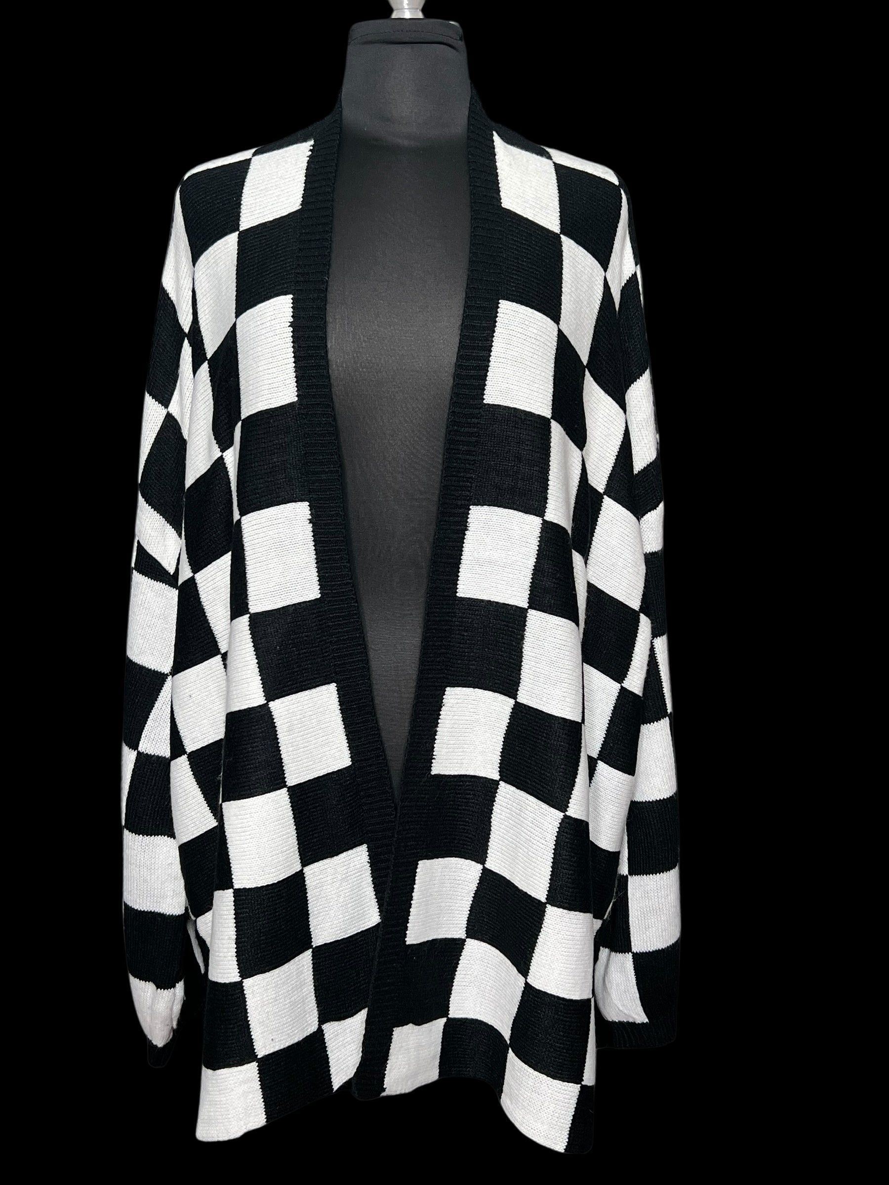 10.27 Sweaters Blk/Wht Checkered Cardigan (XL/1X)