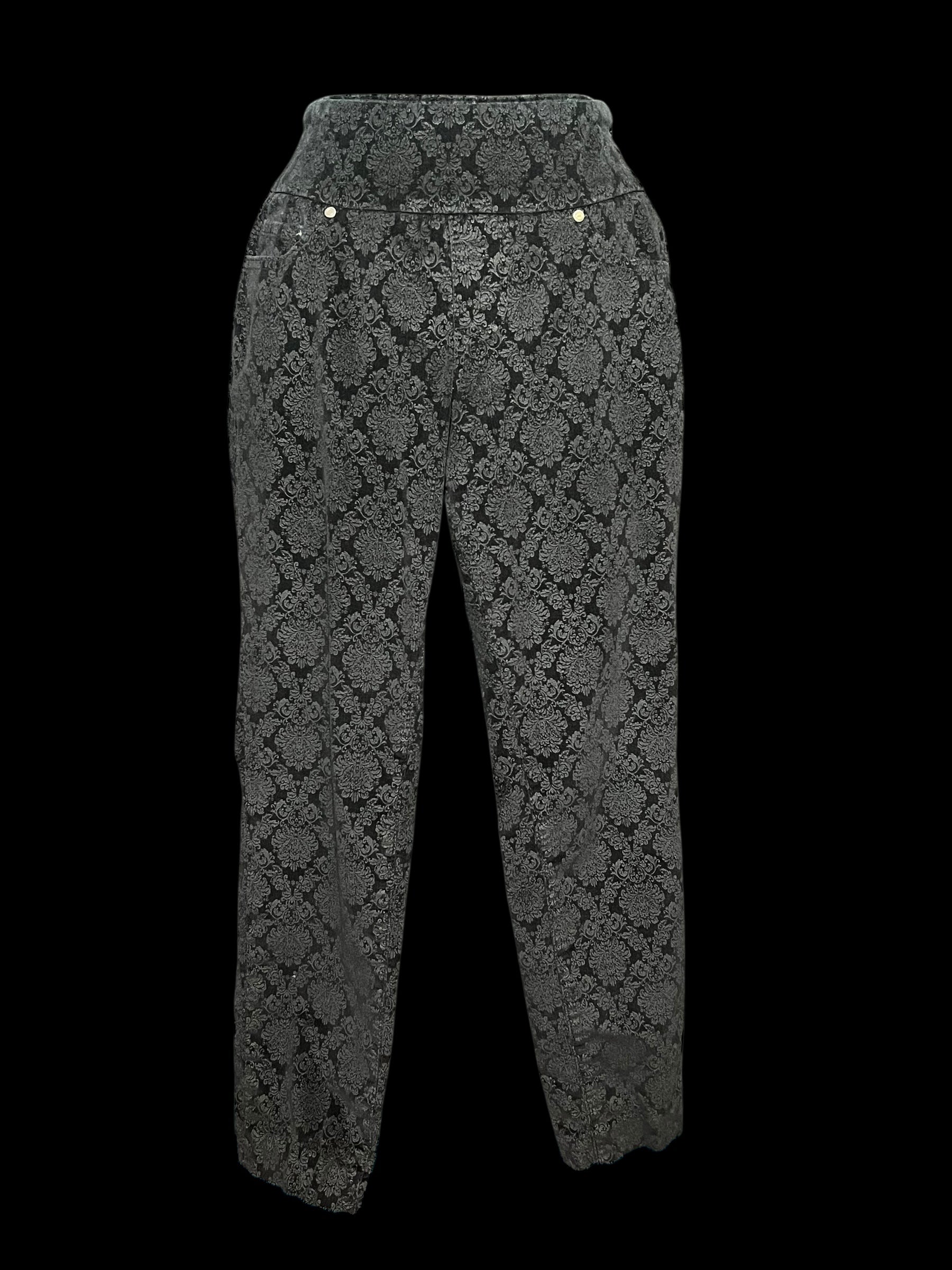 11.04 Pants Jag Jeans Blk Corduroy Filagree Print (8) Slim