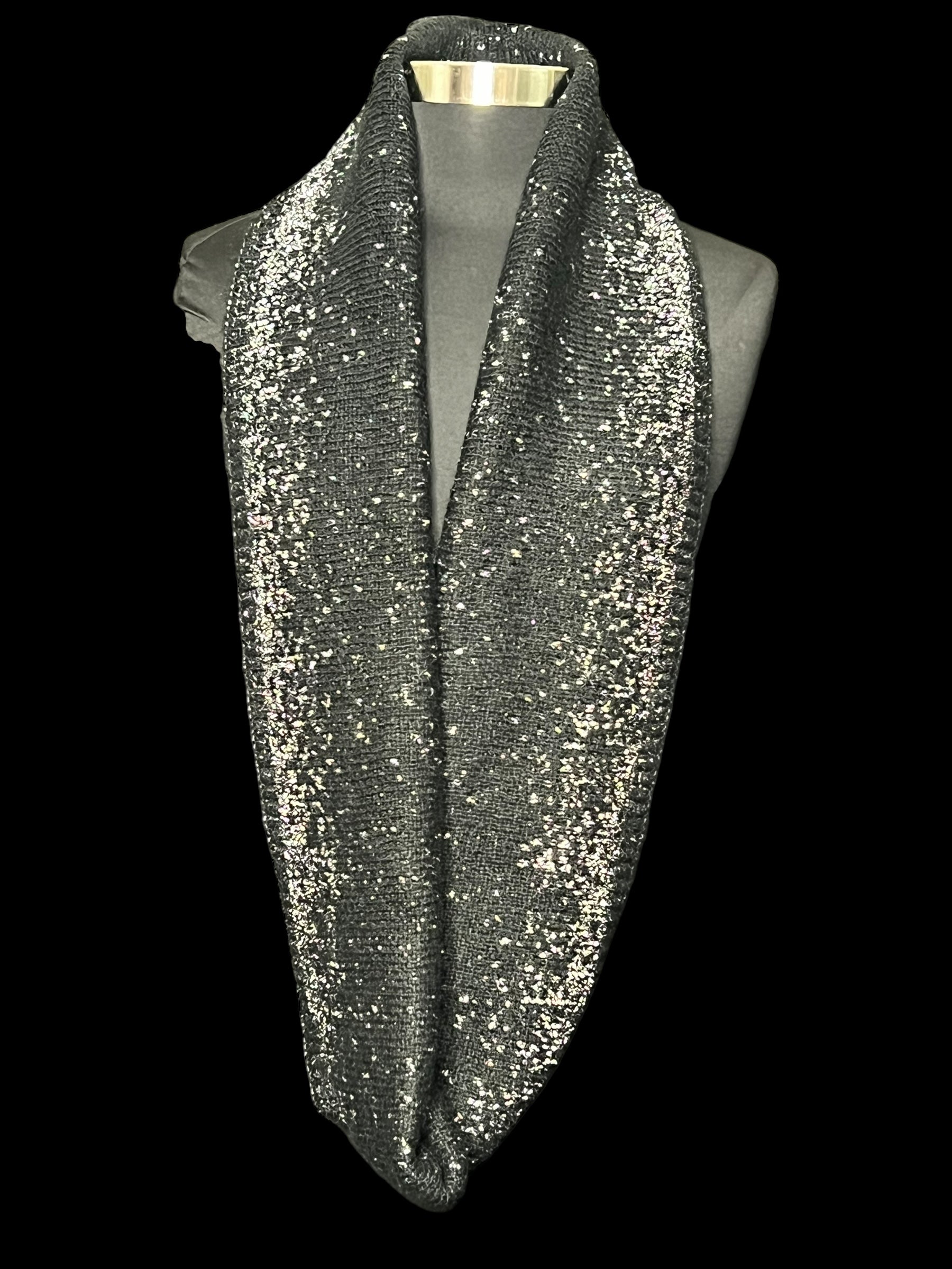 12.23 Scarves Black Silver Glitter Infinity